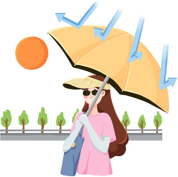 防晒三件套:遮阳帽、遮阳伞、防晒霜,能挡住大部分紫外线。