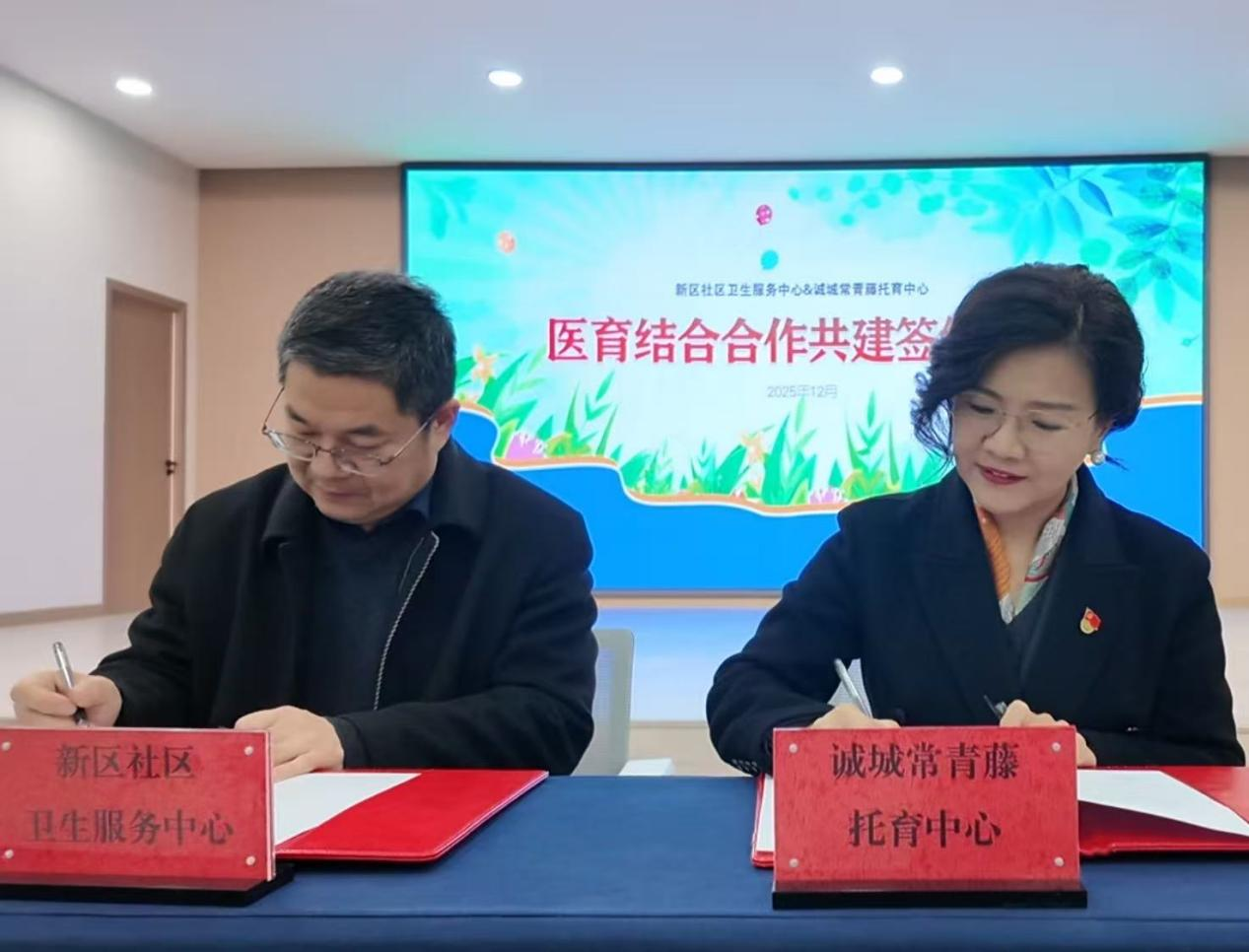为深入落实国家“医育结合”发展要求,新区卫生服务中心与诚城常青藤托育中心正式签订“医育结合”战略合作框架协议。此次签约是红旗区首家医疗机构与托育机构达成深度合作,是构建专业化、规范化婴幼儿照护服务体系的突破性实践,标志着辖区“医育结合”模式从政策引导迈向实体落地,托育服务注入专业医疗动能。