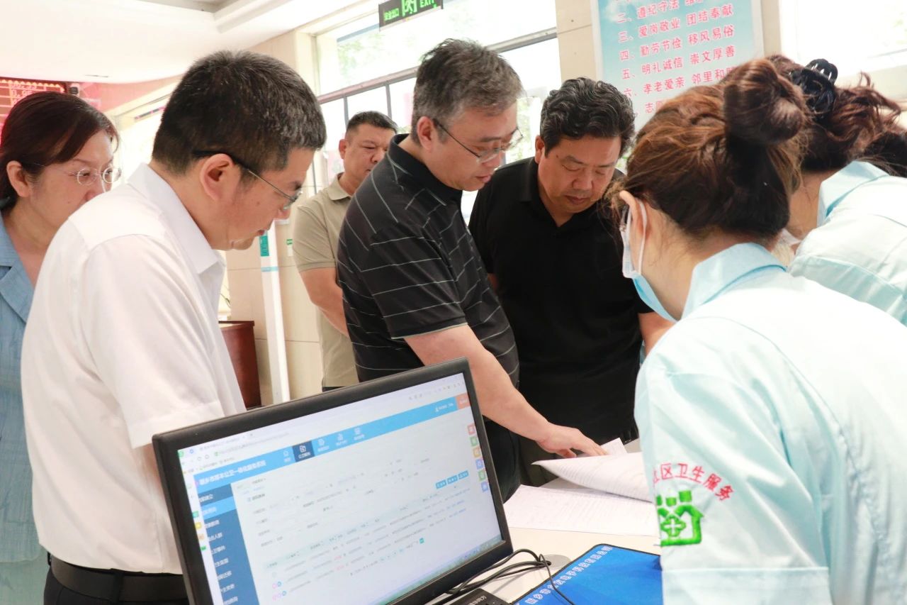 6月25日上午,市红旗区人大副主任李如意一行到我院新区社区卫生服务中心针对“民生十大实事——提升基层医疗卫生服务能力和重点人群健康保障水平”工作进行调研,区卫健委相关工作人员、我院杜永芳书记、吴晶莹副院长陪同。